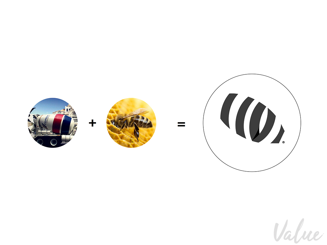 Partiendo del la labor corporativa que es construcción y venta de concreto para la misma, logramos adaptar la analogía de la abeja que representa la clase obrera de la construcción, con la mezcladora de cemento para tener un isotipo representativo de la marca. En cuanto a la tipografía, trabajamos unos caracteres fuerte y robustos que representan la marca.